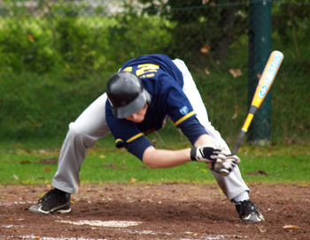 Wie wichtig ein starker Zusammenhalt im Team sein kann, war daran zu erkennen, dass man sich gegenseitig anfeuerte und nach Fehlern wieder aufbaute. Daraus resultierte, dass die Defense sehr gute Arbeit leistete und es nach dem dritten Inning immer noch 0:0 stand. Durch zwei Errors im Leftfield musste unser Team dann aber doch die ersten Runs kassieren, konnte aber seinerseits ebenfalls punkten, sodass es nach dem fünften Inning nur 02:05 für die Gäste aus Minden stand. Die Sensation war also immer noch möglich! Im sechsten Inning merkte man unserem Pitcher Armin Sieber dann aber doch den Einsatz des Vortages an. Die Pitches wurden zunehmend unpräziser, die Gäste aus Minden hatten sich auf ihn eingeschlagen und erzielten schließlich satte zehn(!) Runs (Punkte). Um nicht vorzeitig schon nach der 10 – Run – Rule (Die 10-Run-Rule tritt ein, wenn die Mannschaft nach dem fünften oder sechsten Inning in der Bezirksliga mit 10 oder mehr Runs führt.) zu verlieren, brauchte unser Team vier Runs, es gelangten allerdings nur zwei, somit war das Spiel bereits nach dem sechsten Inning bei einem Spielstand von 04:15 beendet.